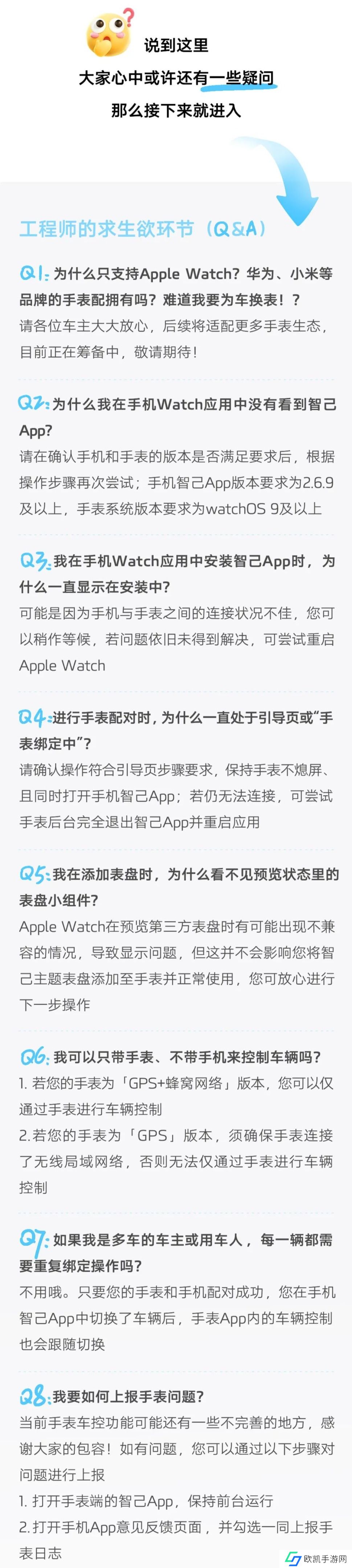 此外,智己汽车官方还发布了手表车控相关答疑,其中提到该功能还将适配更多手表生态。详情如下: