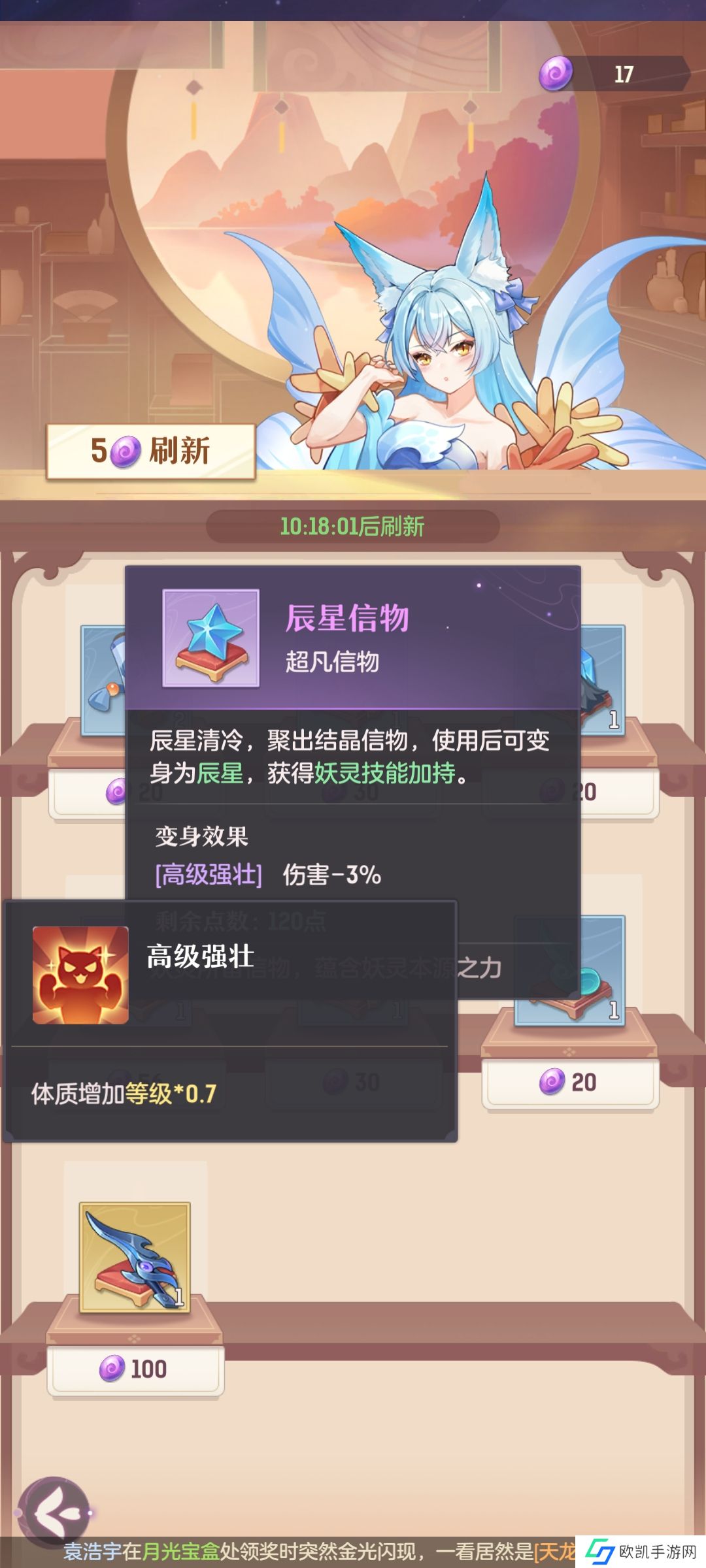 辰星:高级体质,灵狐进阶版,增加体质=等级*0.7好用实惠。不卷速度的青丘建议带晨星,抗揍。