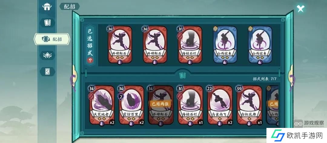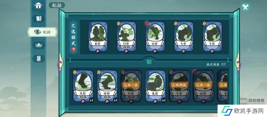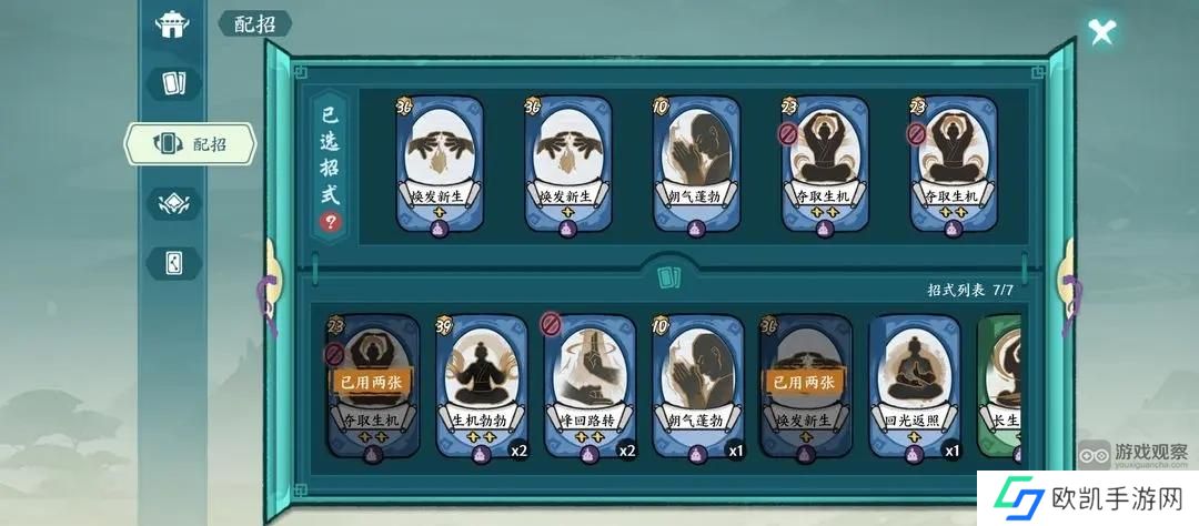 7、功法上,需要螺旋九影2星,白虹掌力6星,开全机制,机制不全没有重影和双山雨欲来的情况下容易停转,会更依赖灵猴的过牌来拯救停转的回合。