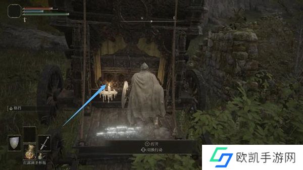 2、后面有个废墟,里面有许多君王军,在赐福点附近有辆马车。
