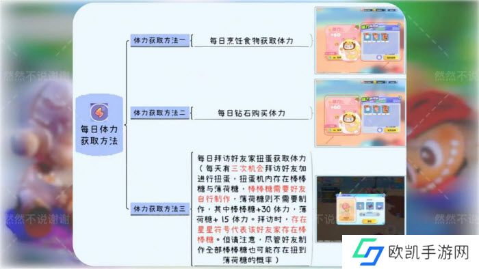 每天有三次机会拜访好友加进行扭蛋,扭蛋机内存在棒棒糖与薄荷糖,棒棒糖需要好友自行制作,薄荷糖则不需要制作,其中棒棒糖+30体力,薄荷糖+15体力。拜访时,存在星星符号代表该好友家存在棒棒糖。但请注意,尽管好友制作全部棒棒糖也可能存在扭到薄荷糖的概率。