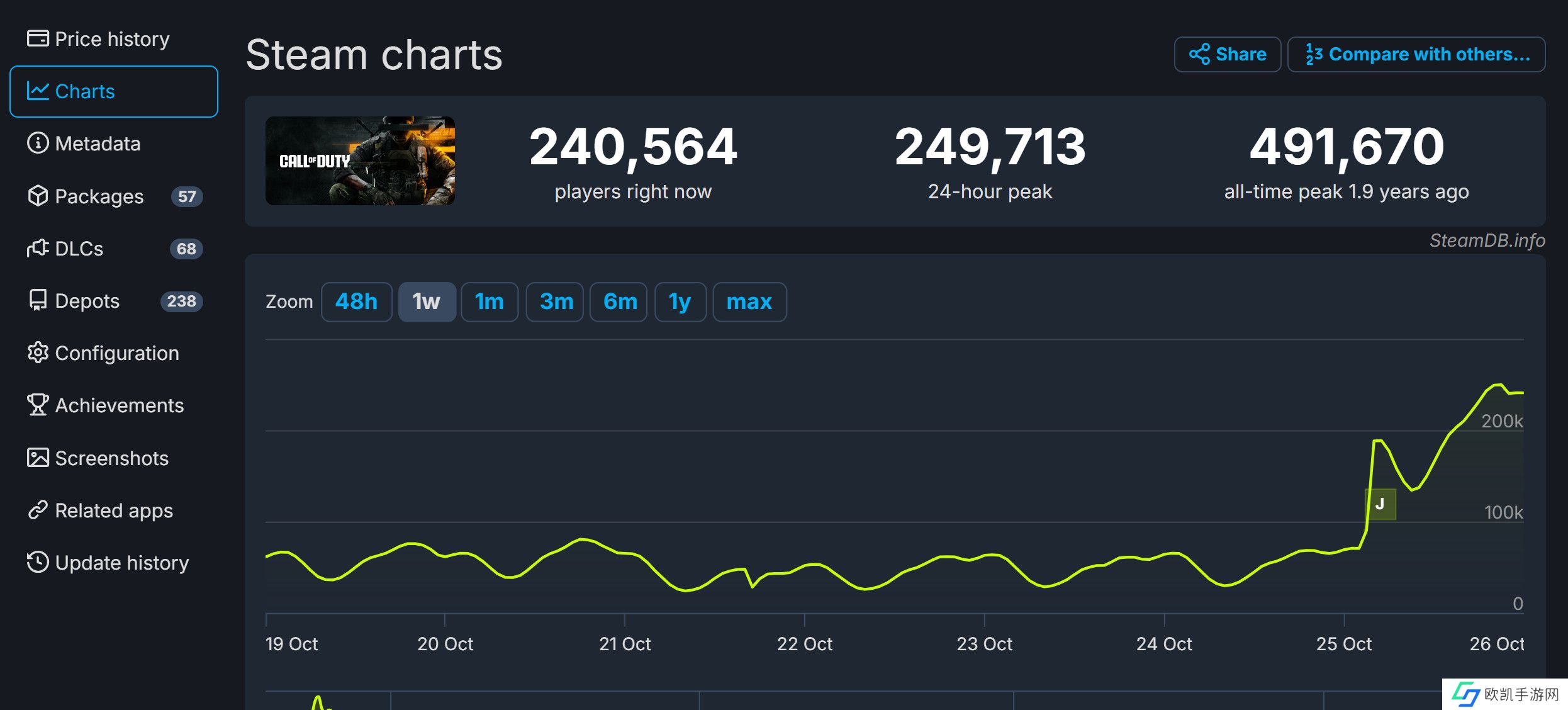 然而今年的《使命召唤21:黑色行动6》却打了一个完美翻身仗,该作的单人战役获得IGN 9分好评,而且SteamDB显示,发售24小时,在线峰值接近25万人。随着周末的到来,这一在线峰值还有不少上涨空间。