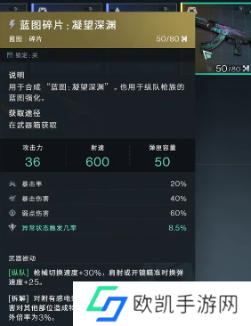 4、攻击力有360、射速达到六百、有五十发容量子弹匣。