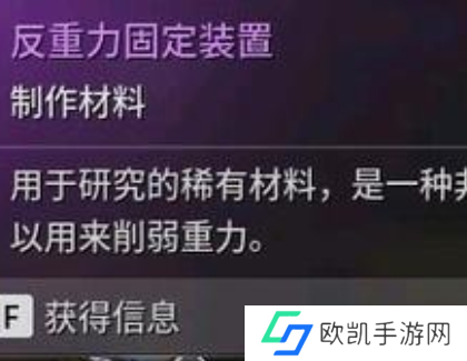 5、反重力固定装置是一种极为稀有的材料,其主要作用是能够有效地削减重力的影响,这种材料在游戏中的用途广泛且重要,比如可以用于制造特殊的装备,使角色能够在特定环境中更轻松地行动;或者用于研发高科技道具,突破重力限制,实现一些原本无法完成的任务和操作。