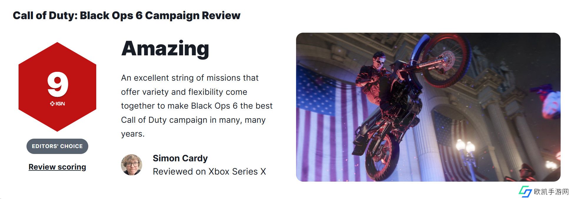 《使命召唤21:黑色行动6》单人战役评分出炉,IGN 9分。