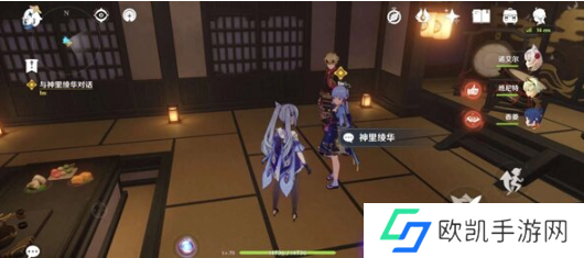 2、之后我们要前往木漏茶市,在这里会看到托马和神里凌华,我们上前与他们互动。