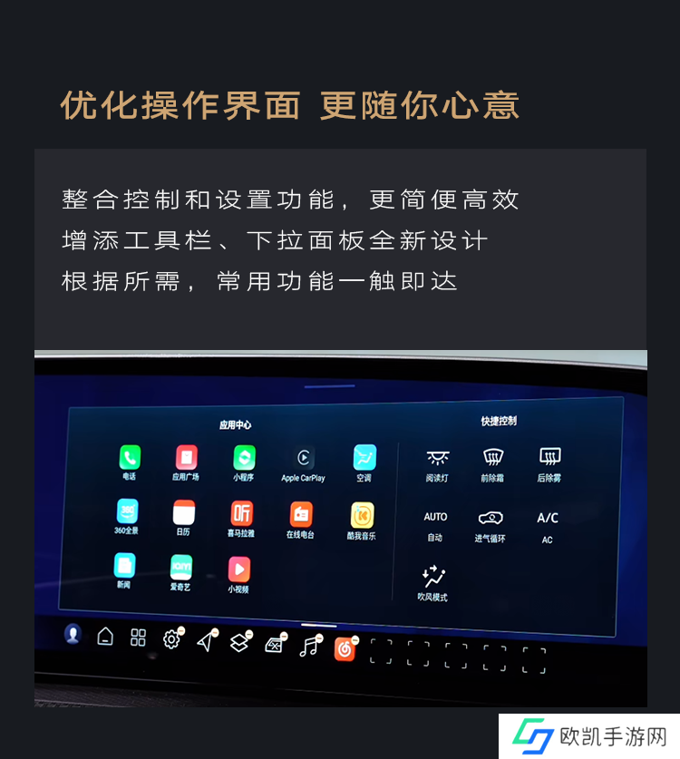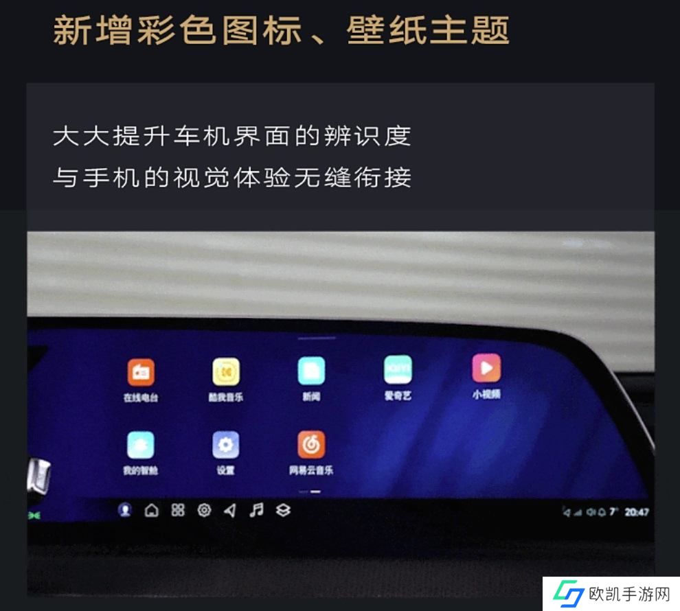 在车机界面方面,此次升级新增了彩色图标和壁纸主题,此外操作界面也进行了优化,支持用户根据个人偏好整合控制与设置功能,并增添工具栏、下拉面板全新设计,常用功能一触即达。