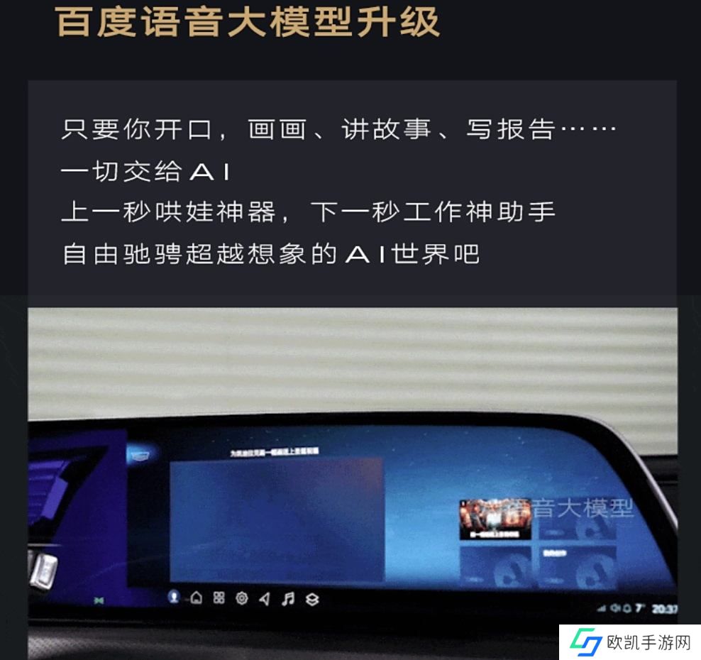 此外,百度语音大模型升级,支持语音控制车机画画、讲故事、写报告等,并且可见即可说体验再升级,语言可控的范围扩大,支持双区同时唤醒和交互,一句话 10 个指令也能响应。