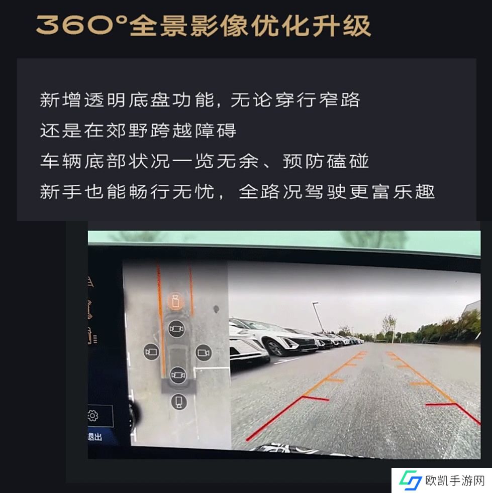 本站注意到,在 360 度全景影像功能方面,此次升级新增了透明底盘功能,使车辆底部状况能够清晰呈现,有效减少因地形复杂导致的磕碰风险。此外,还新增了尾门开启安全提示功能,即使在空间狭窄或复杂车位中停车,用户也能准确预估尾门开启所需的安全距离。