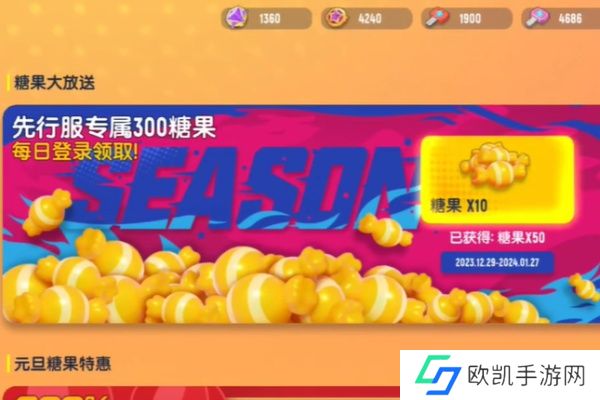 1、新赛季版本福利,玩家只需要登录六天免费白嫖100糖果。