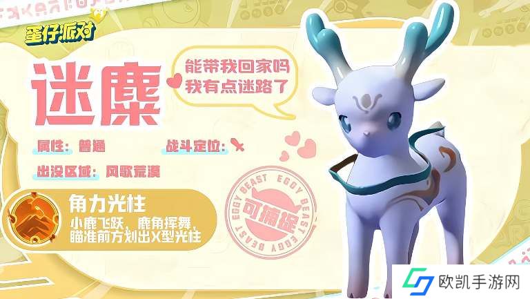 蛋仔派对艾比迷麋怎么捕捉?在国庆节版本更新之后,游戏中将上线全新的艾比“迷麋”,这是一个小鹿形态的艾比,玩家们可以在风歌荒漠来进行捕捉。下面为大家详细介绍迷麋的技能特性和捕捉方法,想要了解的玩家可以参考以下的攻略内容。