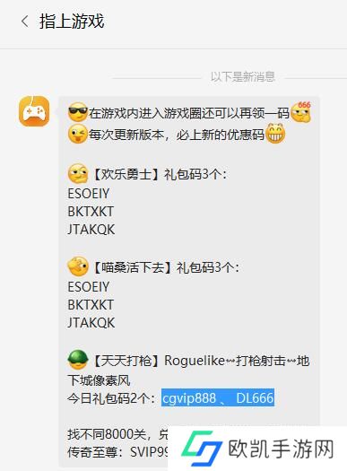 2、关注游戏官方公众号——指上游戏,回复1即可获取日常福利礼包