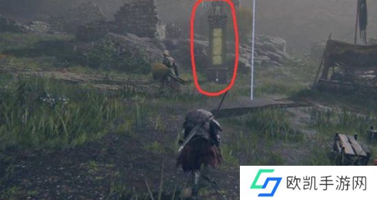 1、进入游戏地图,前方柱子那里拿到这片区域的地图。