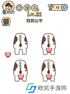 脑洞大大大第21关怎么过?第21关的题目是“找到公牛”,在这一关中我们只要在4头母牛中找到一头公牛即可,下面小编就为大家带来了脑洞大大大第21关攻略。
