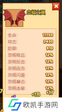 1、小编相信大家一开始都是这个最基础的“血蝠之翼”翅膀吧,这个翅膀小编还记得应该是七天签到就可以领取到的吧,这个翅膀是最最基础的翅膀,并且后期成长性并不大,而且基本上所附加的属性没有突出的加成效果(注意:千万不要像小编一个朋友一样把这个翅膀等级升上去,这样非常的浪费资源会导致后来购买的翅膀升级没有资源去升),所以当小伙伴们有比较充足的钻石时,小编推荐尽早更换这一个翅膀。