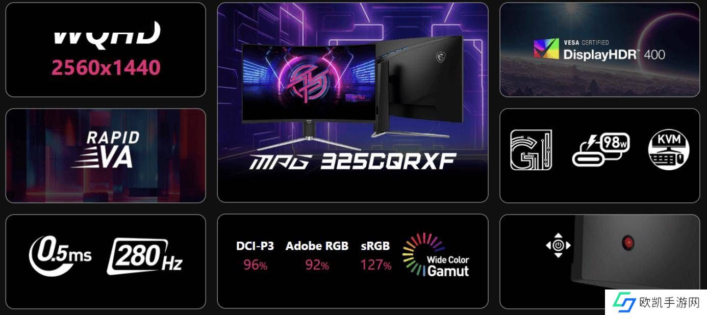 获悉,这款显示器配备 2560x1440 分辨率 280Hz Rapid VA 面板,曲率 1000R,GTG 响应速度 0.5ms,显示器亮度 400 尼特,覆盖 96% DCI-P3 色域和 127% sRGB 色域。