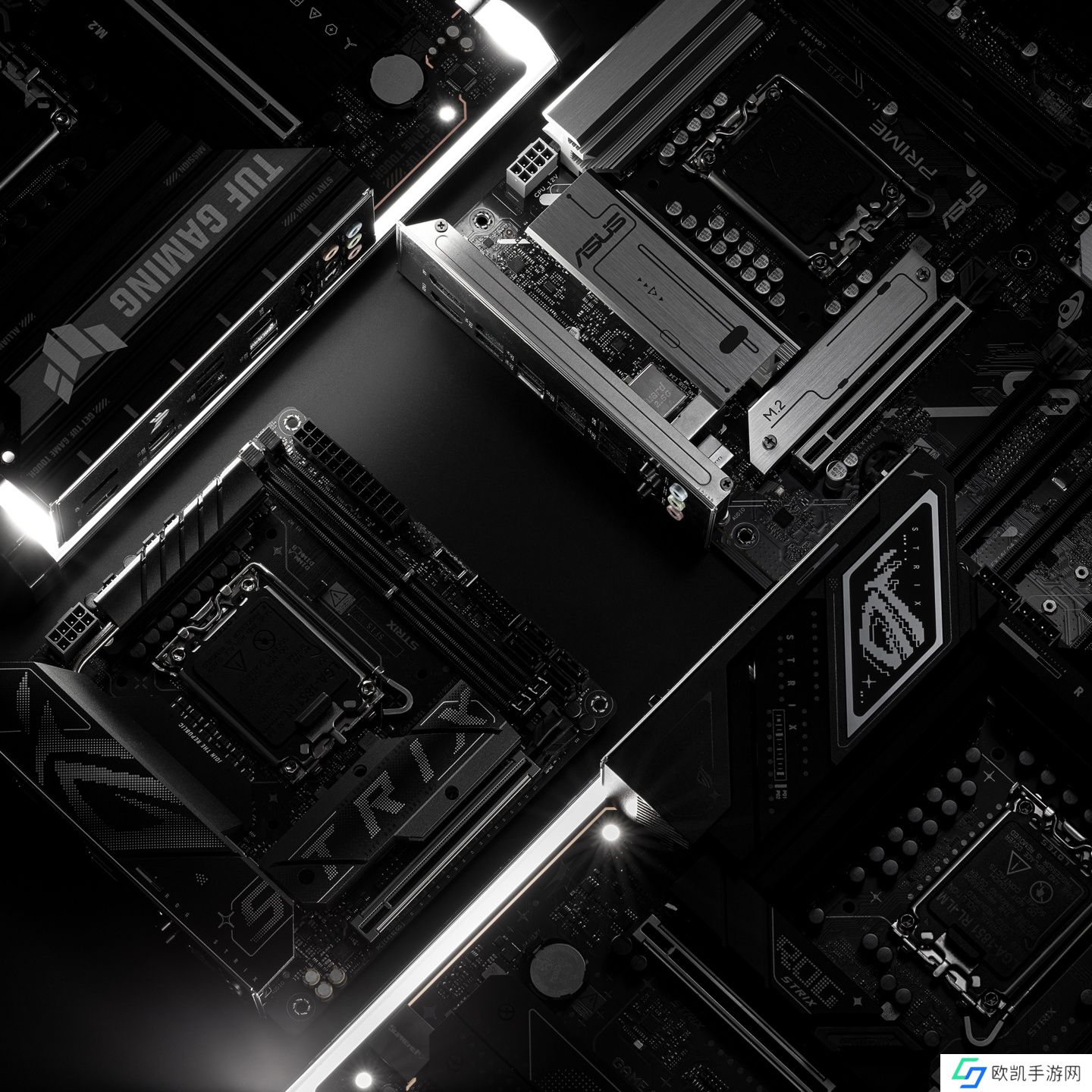 本站注意到,华硕海报中包括至少四款新品,包括PRIME 大师系列、TUF Gaming 电竞特工和 ROG STRIX 猛禽系列,左下角这款似乎还是一款 ITX小板。