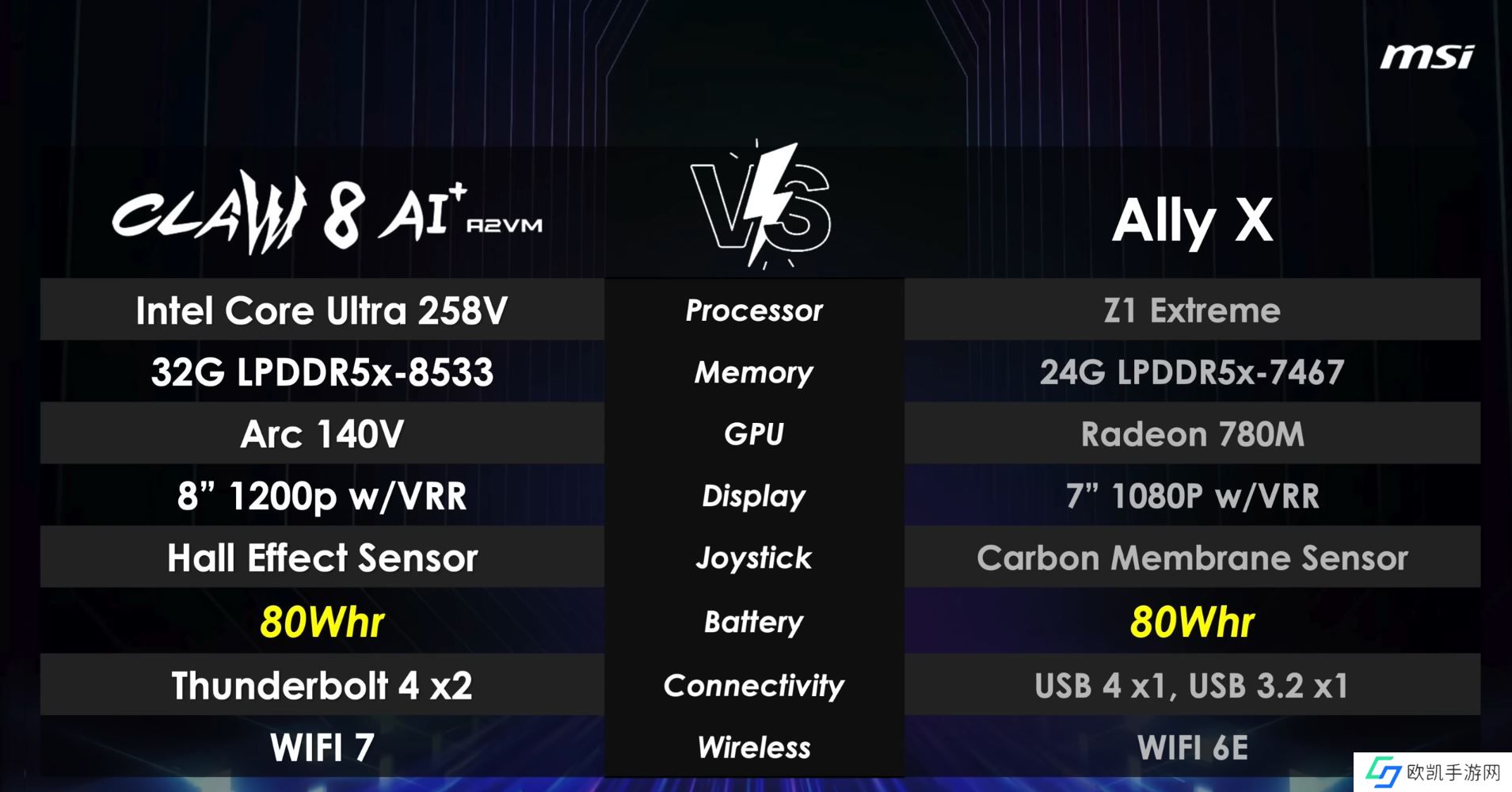 《微星新款 Claw 8 AI+ 游戏掌机发布:搭 Ultra 7 256/258V 及 16/32GB RAM,799 美元起》