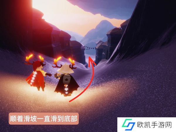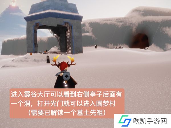 1、首先我们去霞谷右侧圆梦村,滑下长隧道。
