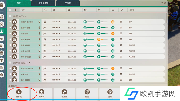 3、玩家也可以多招聘一些庶务员,来打扫动物园的卫生。