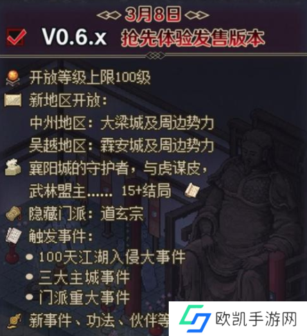 大侠立志传EA版100天江湖入侵大事件是什么?EA版加入了100天江湖入侵大事件,算是一个强制结局,如果你一事无成过完了100天,就会强制进入这个坏结局,具体内容小编将在下文为各位介绍。