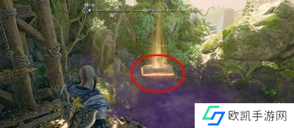 13、过桥后右拐小路左边点燃第三个符文机关,回头在桥下找到诺伦三女神宝箱,这时能直接打开。