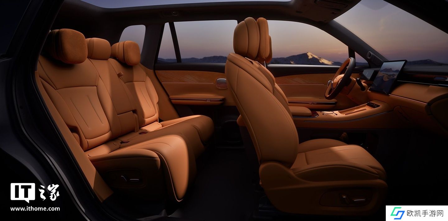 车身侧面显示,该车采用了大五座的座舱布局,官方介绍称前后排座椅均可大角度躺倒,侧门音响及装饰线条取材海上日出。此外,这款新车还配备了吸顶式大尺寸娱乐屏,提供更多智能化体验。