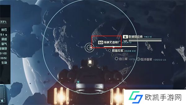 1、海神叉豪华造船厂位于阿基拉星,我们在跃迁到星球外围的小行星带就可以发现该造船厂了。