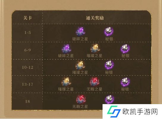 6、神器材料副本共有18个关卡,通关每个关卡都能固定获得秘银和1-2种陨星。