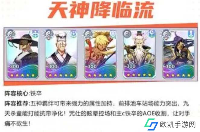 天神降临流:池车站场能力突出,九天杀童能打能抗带净化,咒仕眩晕控场,c铁卒AOE收割。