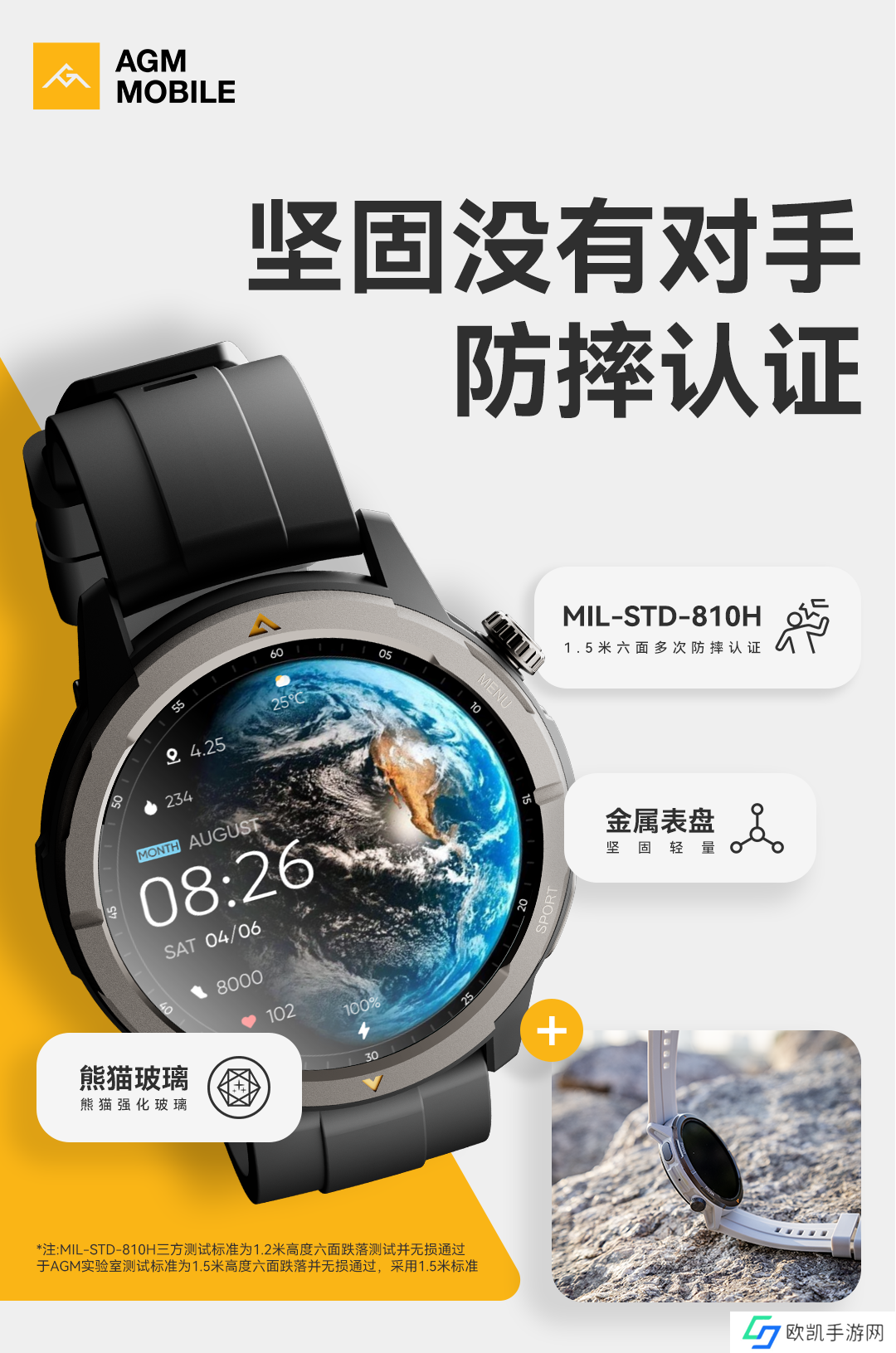 新款手表还配备金属表盘 + 熊猫强化玻璃,通过 1.5 米六面多次防摔认证,其设计宣称降低了屏幕意外损坏的风险,官方同样提供一年期碎屏保修服务。