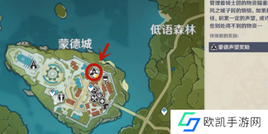4、到达蒙德城门,走到相应的拐角位置,发现三角形标志的NPC就是赫塔;