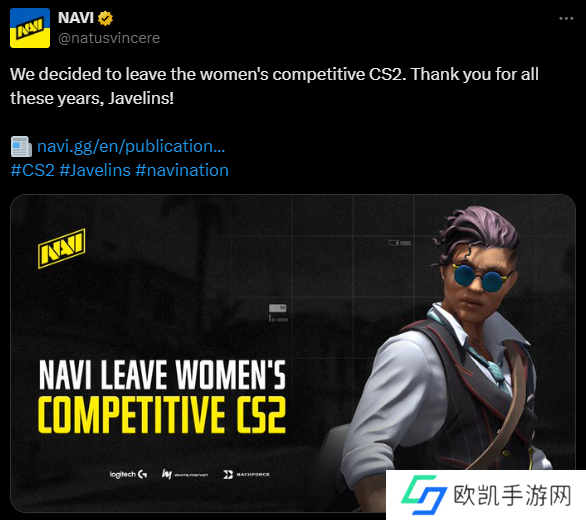 “NAVI电子竞技俱乐部已决定退出女子反恐精英竞技项目。目前,该电竞领域的商业模式似乎难以为继,无法进行长期规划。