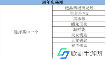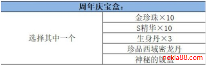 周年庆宝盒奖励,随机其中一种以及获取概率。