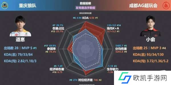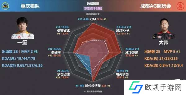 AG狼队选手对位数据雷达图,大家决赛更看好谁?