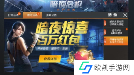 活动地址:游戏中--活动--限时活动--探神秘物资库瓜分百万红包。