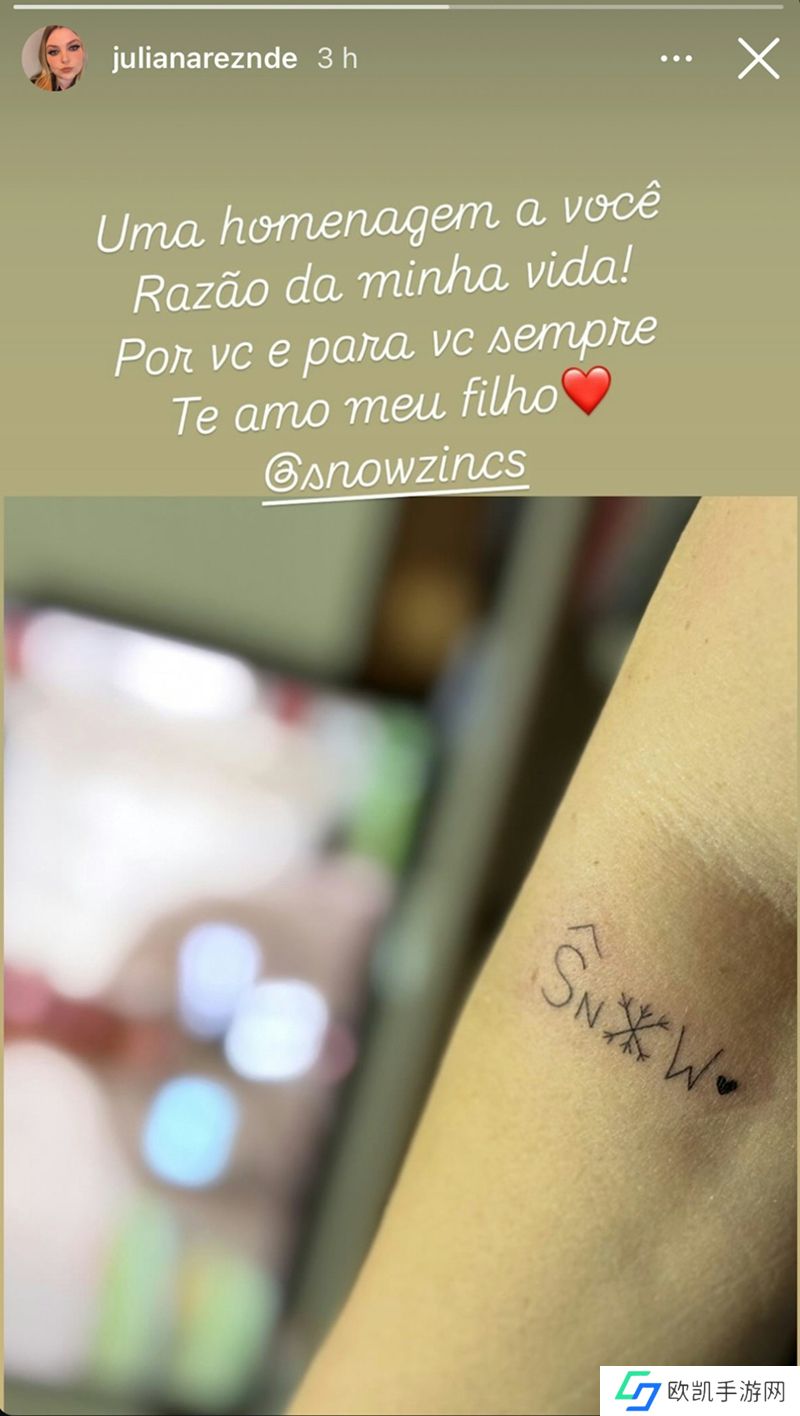 而snow的母亲也在社交平台上激动地晒出了自己手臂上的纹身,上面纹着snow提交签名贴纸的ID。