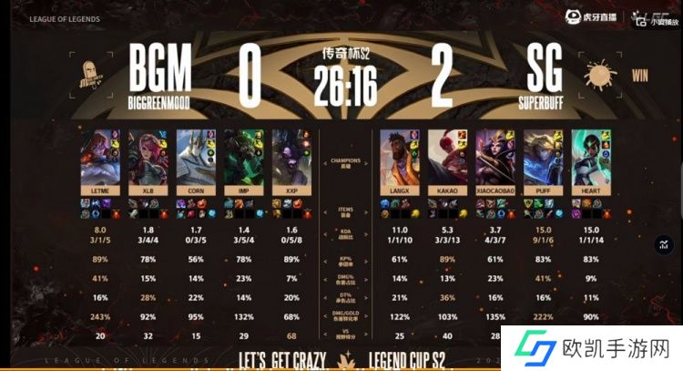 SG:上单Langx、打野Kakao、中单xiaocaobao、下路Puff、辅助Heart