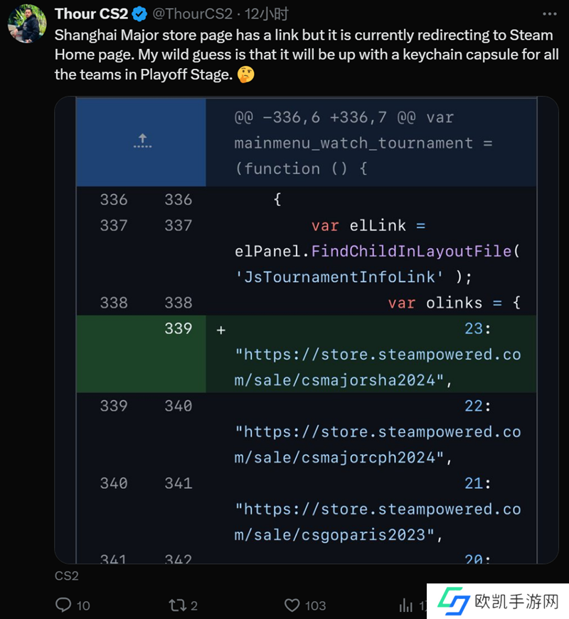 日前社区数据挖掘者ThourCS在社交平台上分享了自己的发现。他注意到在上海Major的商店页面有一个链接,但目前该链接正重新定位到Steam主页。他大胆猜测这个链接最终会对应为上海Major八强战队的挂件胶囊。
