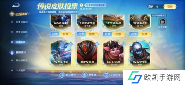 12月12日,策划开启了传说新皮肤的投票活动。