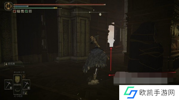 13、往赐福右边的房间走,前方有一个雕像,对着雕像使用动作【母亲啊】,即可开启雕像后面的暗门。