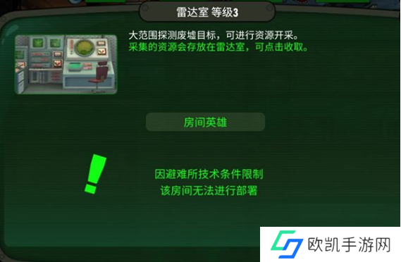 雷达室:是除了资源生产房间之外获取资源的唯一途径。通过雷达进行大范围侦测之后,可以进行资源开采。因此不要忽略雷达室的建造和升级。