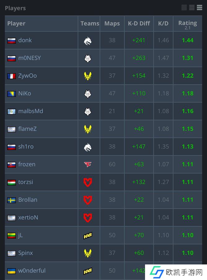 其中,刚刚夺得Major MVP的donk以1.44的平均rating傲视群雄,紧随其后的是m0NESY与ZywOo,NiKo则是以1.18的rating位列第四。值得注意的是,在年末评选TOP 20选手时,这四项超级赛事的参考比重较大,因此,此份名单具有较高的参考意义。目前来看,donk成为TOP 1几乎已经板上钉钉。