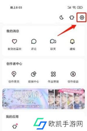 2、然后进入个人中心,点击右上角“设置”图标。