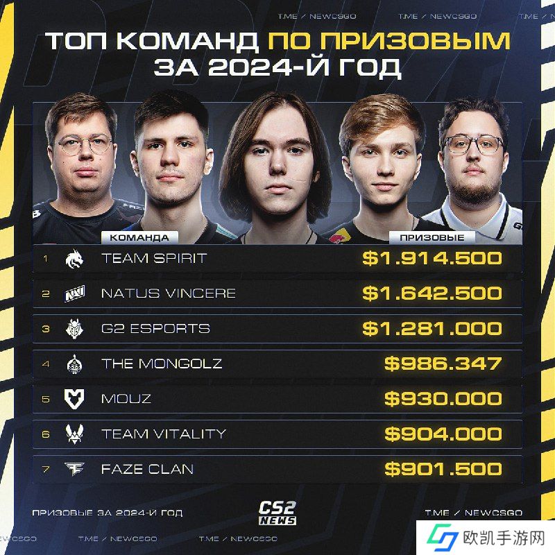 2024年战队收获奖金排行榜如下: