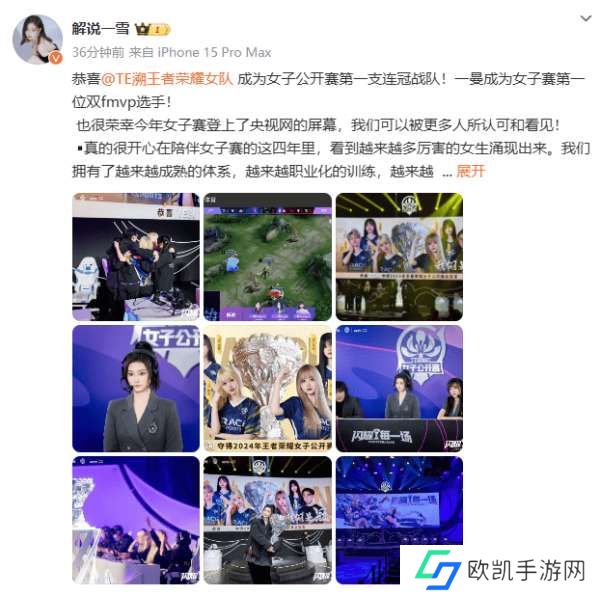 恭喜TE溯王者荣耀女队 成为女子公开赛第一支连冠战队!一曼成为女子赛第一位双fmvp选手!