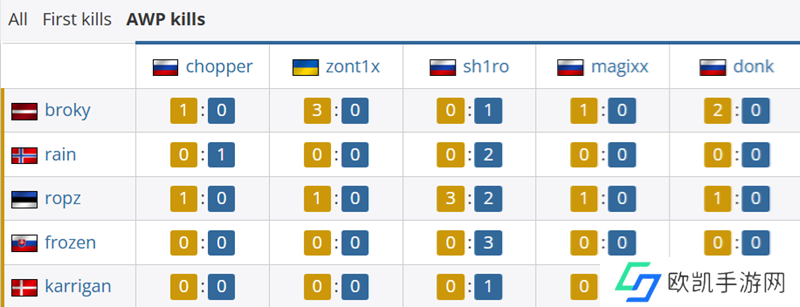 Robin Kool | ropz平分秋色之外,对于其他FaZe选手也占据优势。