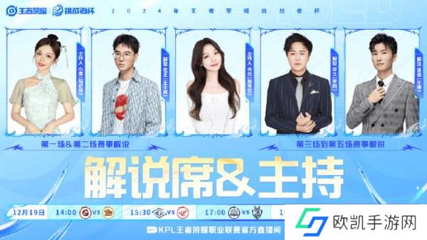 解说席&主持人:解说小鹿 (陆舒媛)、解说老王ww (王华斌)、解说李九 (李昂)、解说天云 (高天云)、解说潇洒洒 (李潮)