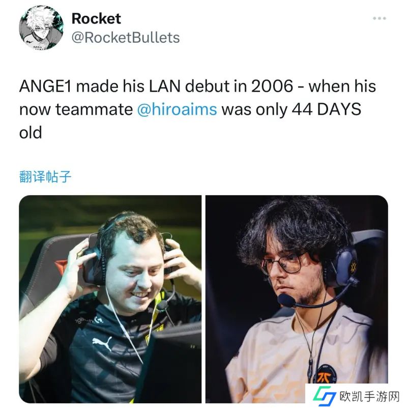 VCT EMEA赛区NAVI战队ANGE1在生涯线下赛首秀时队友hiro仅出生44天。
