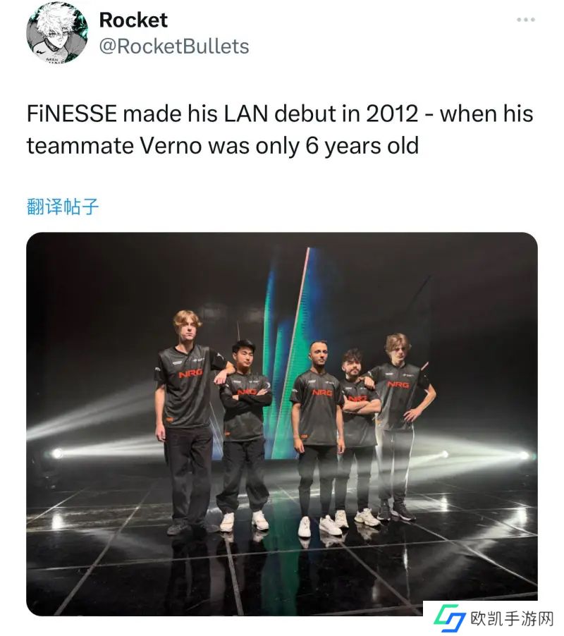 外网博主分享有趣事实,VCT AMER赛区NRG战队FiNESSE选手在生涯线下赛首秀时,队友Verno年仅6岁。